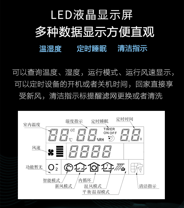 產(chǎn)品特點(diǎn):五檔風(fēng)速調(diào)節(jié)/APP智能監(jiān)控/H13級過濾/智能風(fēng)閥控制/維護(hù)方便、快捷/超博,超靜音/超大液晶顯示